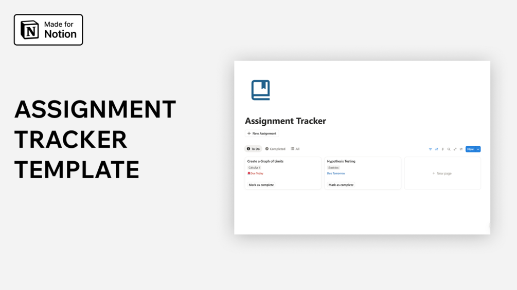 📚 Make assignment tracking simple with this automated Notion template. Organize your assignments by subject or course, and never miss a deadline with the automatic countdown feature.