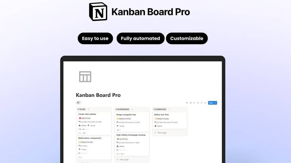 This Kanban Board template provides a clear overview of your team’s work status and streamlines communication, offering a simple yet powerful project-management tool that helps teams organize tasks in a visual workflow, easily update progress by dragging and dropping cards, break larger tasks into smaller actionable sub-tasks, and monitor completion in real time to keep the team coordinated and ensure projects move forward efficiently.